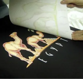 5. Once the garment exits the dryer, lay the foil on the shirt and burnish with an eraser, squeegee or rolled up T-shirt. The harder the foil is rubbed on the shirt, the more foil will adhere.